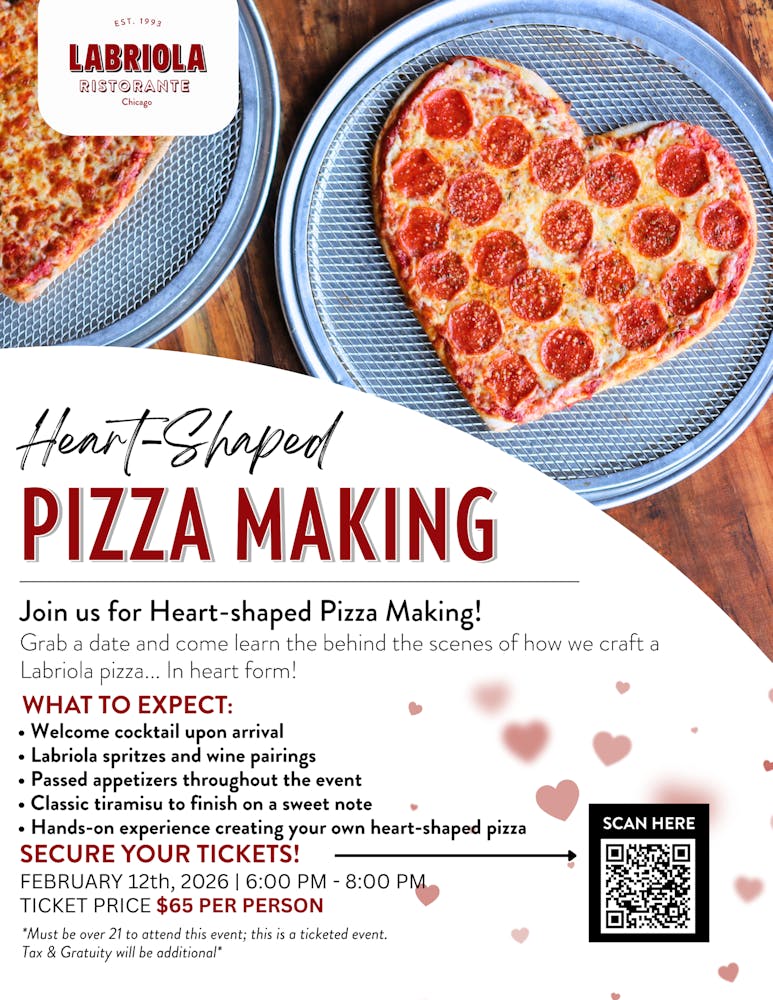 Grab a date and come learn the behind the scenes of how we craft a Labriola pizza... In heart form!