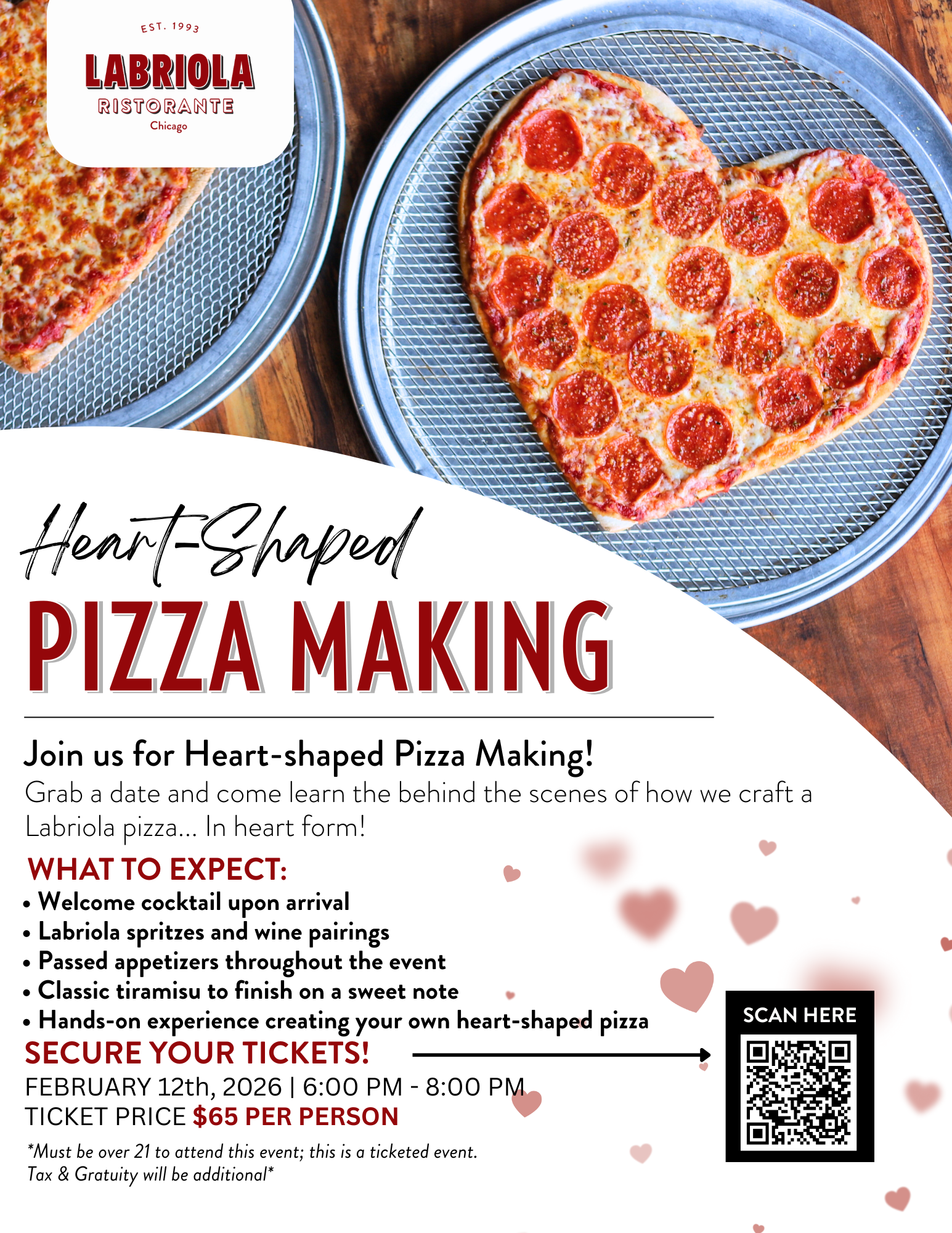 Grab a date and come learn the behind the scenes of how we craft a Labriola pizza... In heart form!